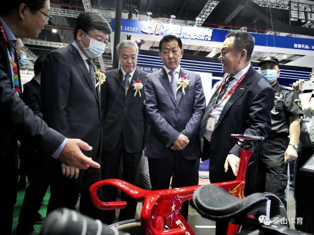 中国体育用品业联合会主席李桦、国家体育总局青少年体育司司长王立伟在凯发(K8)体育产业集团副董事长卞青峰陪同下参观凯发(K8)体育展厅。